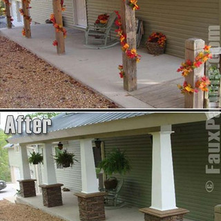 If your porch posts are plain or outdated you can spruce them up pretty easily. You can actually build around the existing posts if they are still in good condition or replace them all together. Check out these before and after shots to see what a difference some nice new pillars can make.